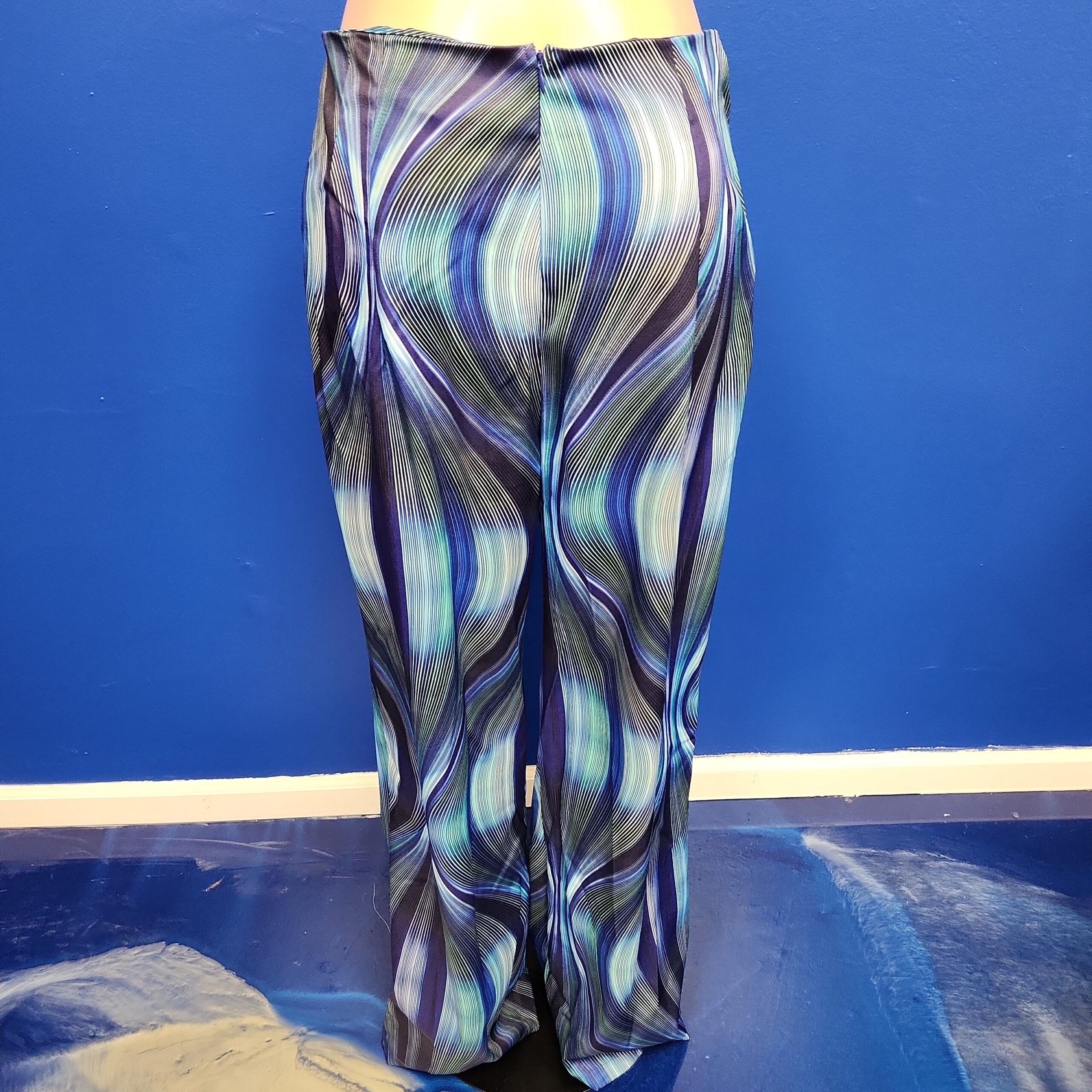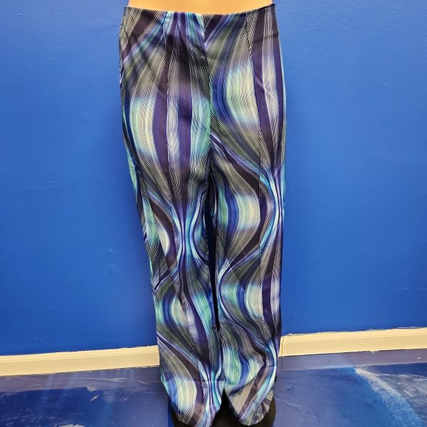 Blue multi swirl satin pants