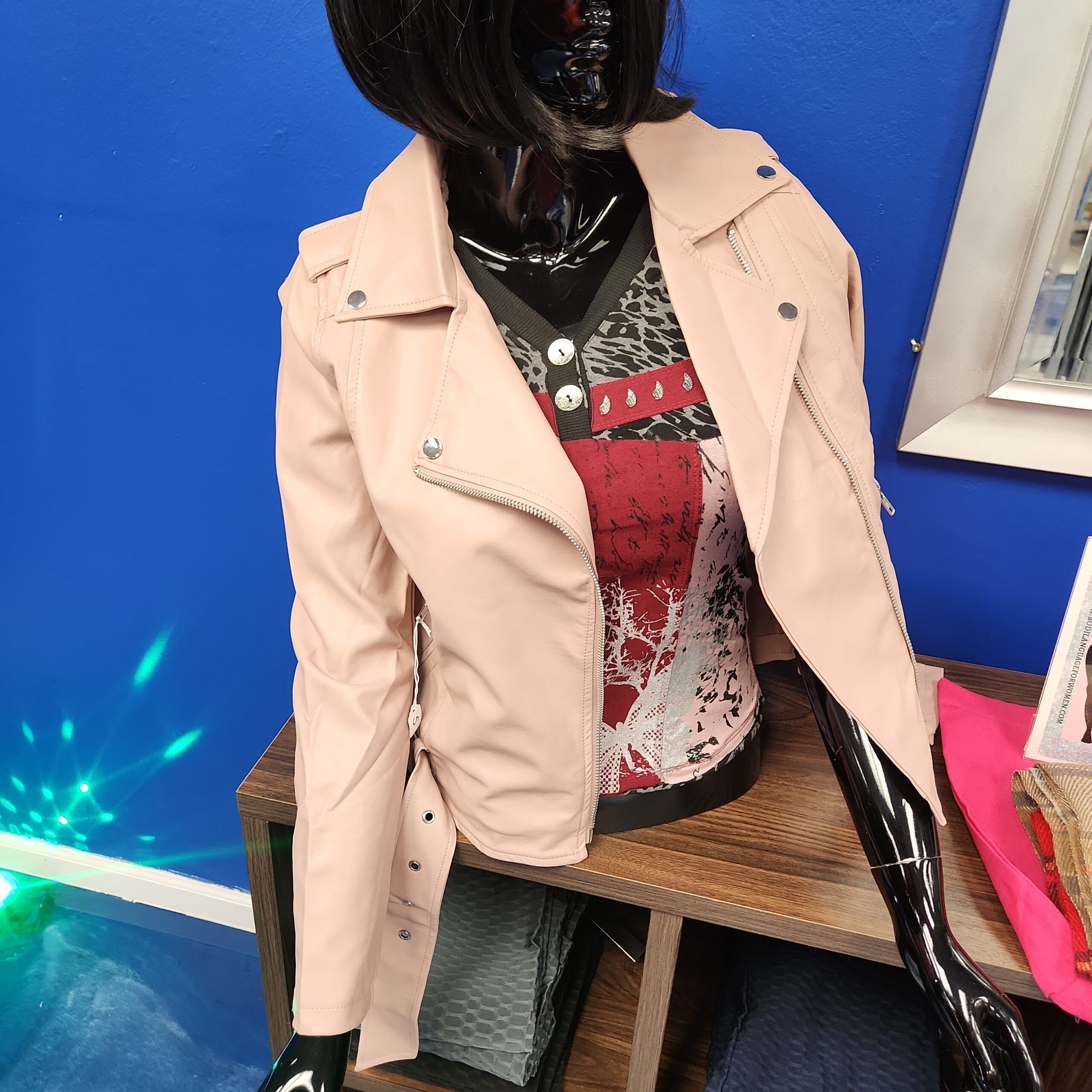 The Pink Moto Jacket is a stylish and trendy outerwear piece made from high-quality materials. It features a vibrant pink color, a sleek moto-inspired design, and a comfortable fit. This jacket is perfect for adding a pop of color to any outfit while keeping you warm and fashionable.