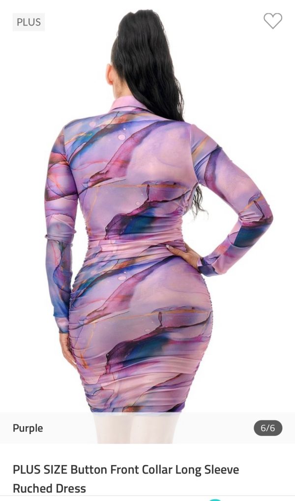 The Plus Love Highlight Dress is a stylish and elegant garment designed with a button front collar. This dress is perfect for any occasion, whether it be a formal event or a casual outing. The highlight feature of this dress is its flattering fit that accentuates the curves of plus-size individuals, making them feel confident and beautiful. The button front collar adds a touch of sophistication to the overall design, giving it a polished and refined look. Purple