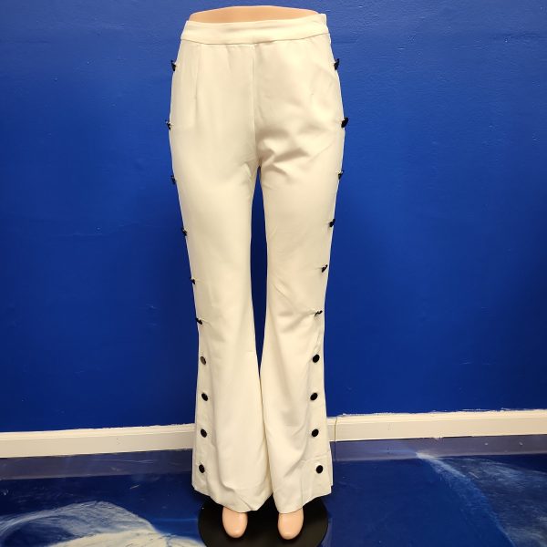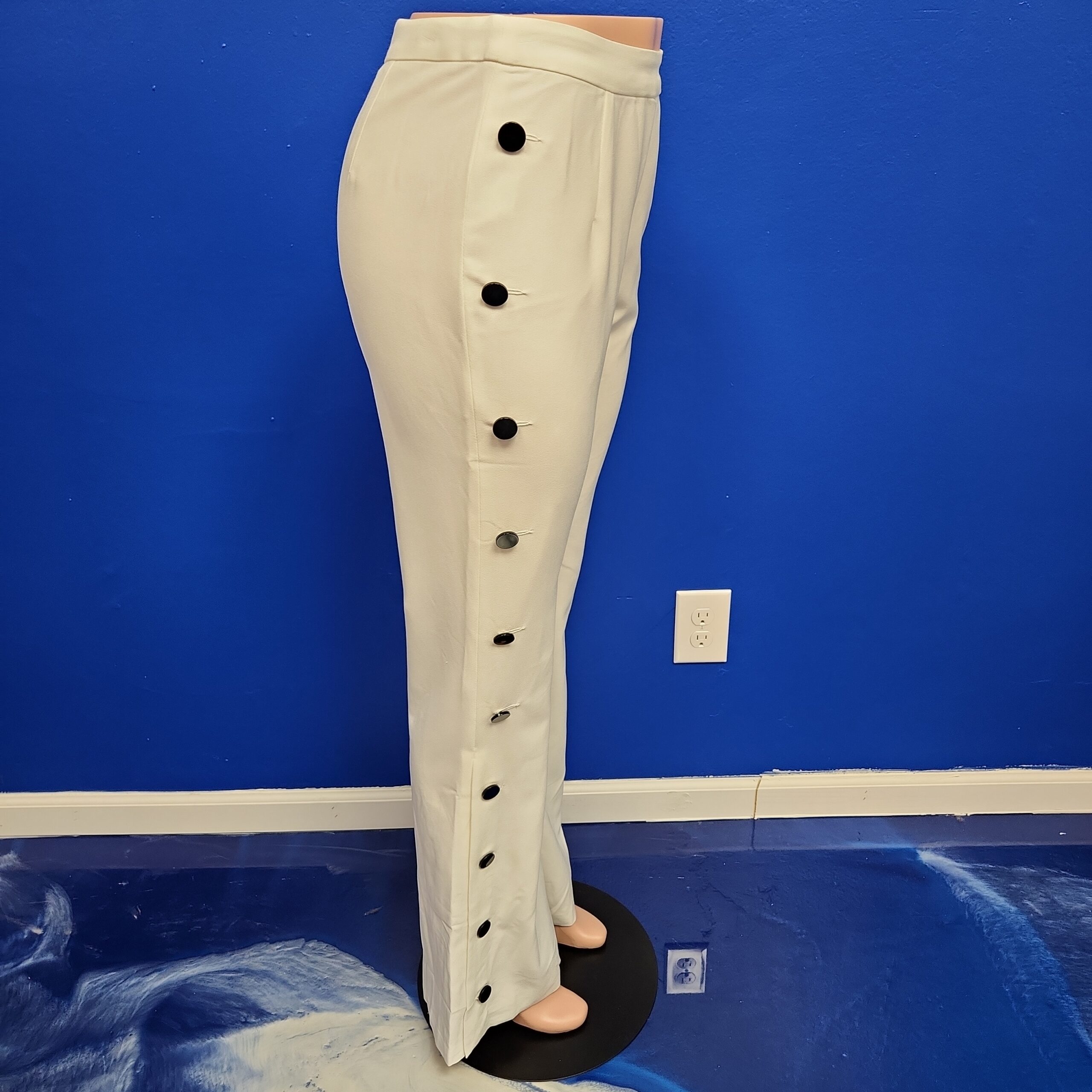 Introducing our stylish and versatile white pants with buttons going down the front of both legs. These pants are designed to offer a perfect blend of fashion and functionality, making them a must-have addition to your wardrobe. Crafted with meticulous attention to detail, these pants are sure to elevate your style quotient.